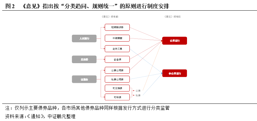 在發行和存續期管理方面,《意見》指出,將按照“分類趨同”的原則,分別按照公開發行和非公開發行公司信用類債券對相關標準進行統一。按照發行方式對債券的發行、存續期信息披露和投資者適當性標準,設定各自的標準,有利于降低發行人和投資者的選擇成本,提高債券融資效率,同時從源頭實現風險和收益的合理分配。