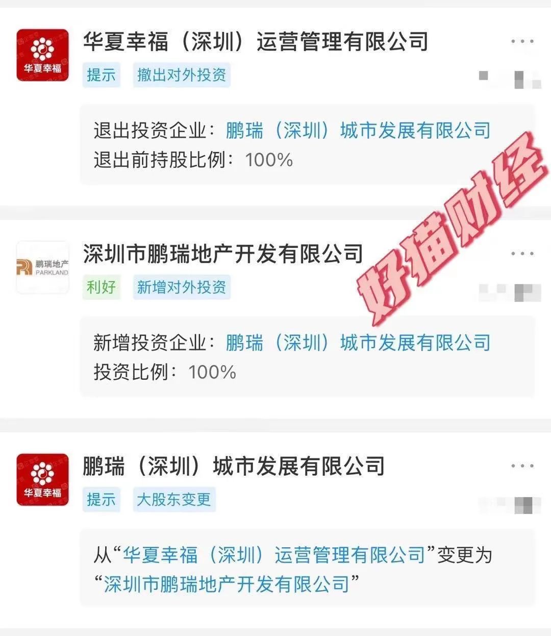 昨天,“華夏幸福(深圳)城市更新管理有限”的股東從“華夏幸福(深圳)運營管理有限公司”變更為“深圳市鵬瑞地產開發有限公司”,并更名為“鵬瑞(深圳)城市發展有限公司”。