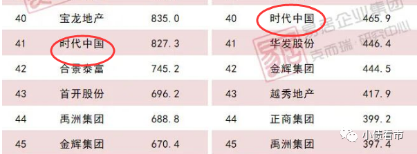據克而瑞數據,2021年時代中國控股以827.3億操盤金額排行第41名;以465.9萬平方米操盤面積排行第40位,屬于中型房企。