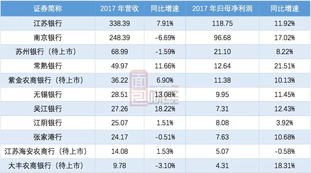 江蘇省內(nèi)11家銀行營收利潤排名見下表: