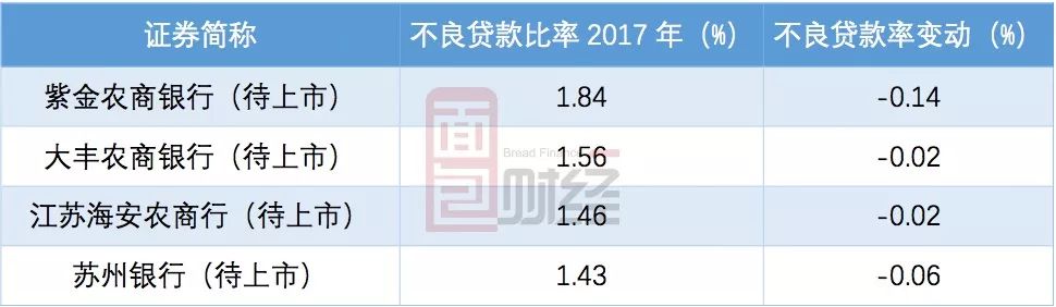 2017年不良率微降:紫金農(nóng)商行不良率居前