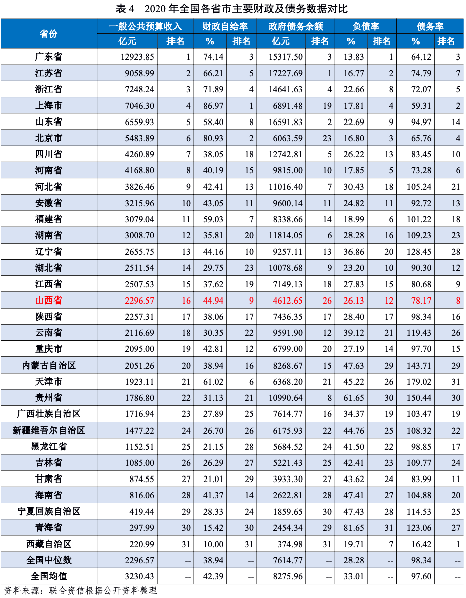 2.山西省財政實力及債務情況