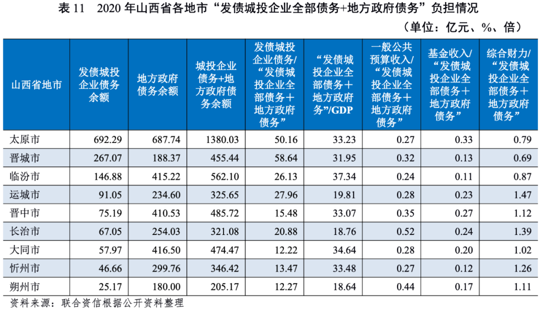 3.山西省各地市財政收入對政府及發債城投企業債務的支持保障能力[2]